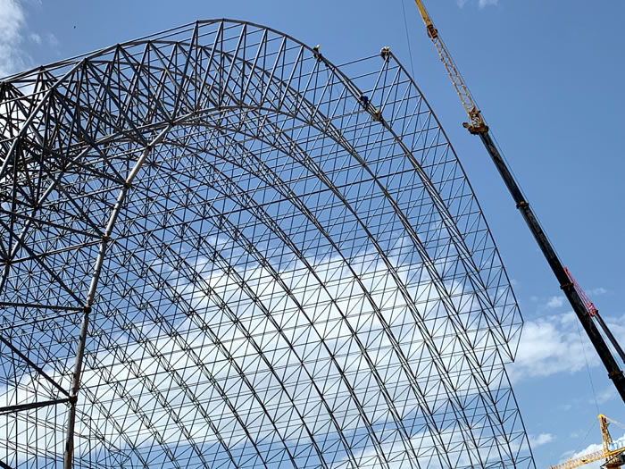 (2)网架加工前应对现场尺寸进行复测,确认无误后方可进行加工、安装;网架制作、运输、安装应遵守《空间网格结构技术规程》JGJ7-2010、《钢网架闵行螺栓球节点》JG/T 10-2009、《钢网架闵行螺栓球节点用高强度螺栓》 GB/T 16939-2016、《闵行钢结构闵行工程闵行施工规范》 GB50755-2012、《闵行钢结构闵行工程施工质量验收标准》 GB50205-2020。
